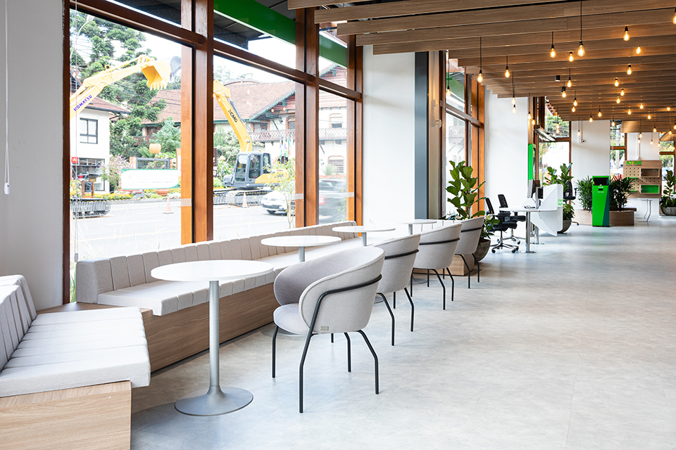 “A nova agência não lembra em nada uma instituição financeira. É muito mais focada em relacionamento, e Gramado estava carente desse tipo de espaço. Por mais que tenhamos muitos restaurantes e cafés na cidade, faltava um local que pudesse ser usado gratuitamente a fim de fechar um negócio, fazer uma reunião e usufruir de internet liberada”.