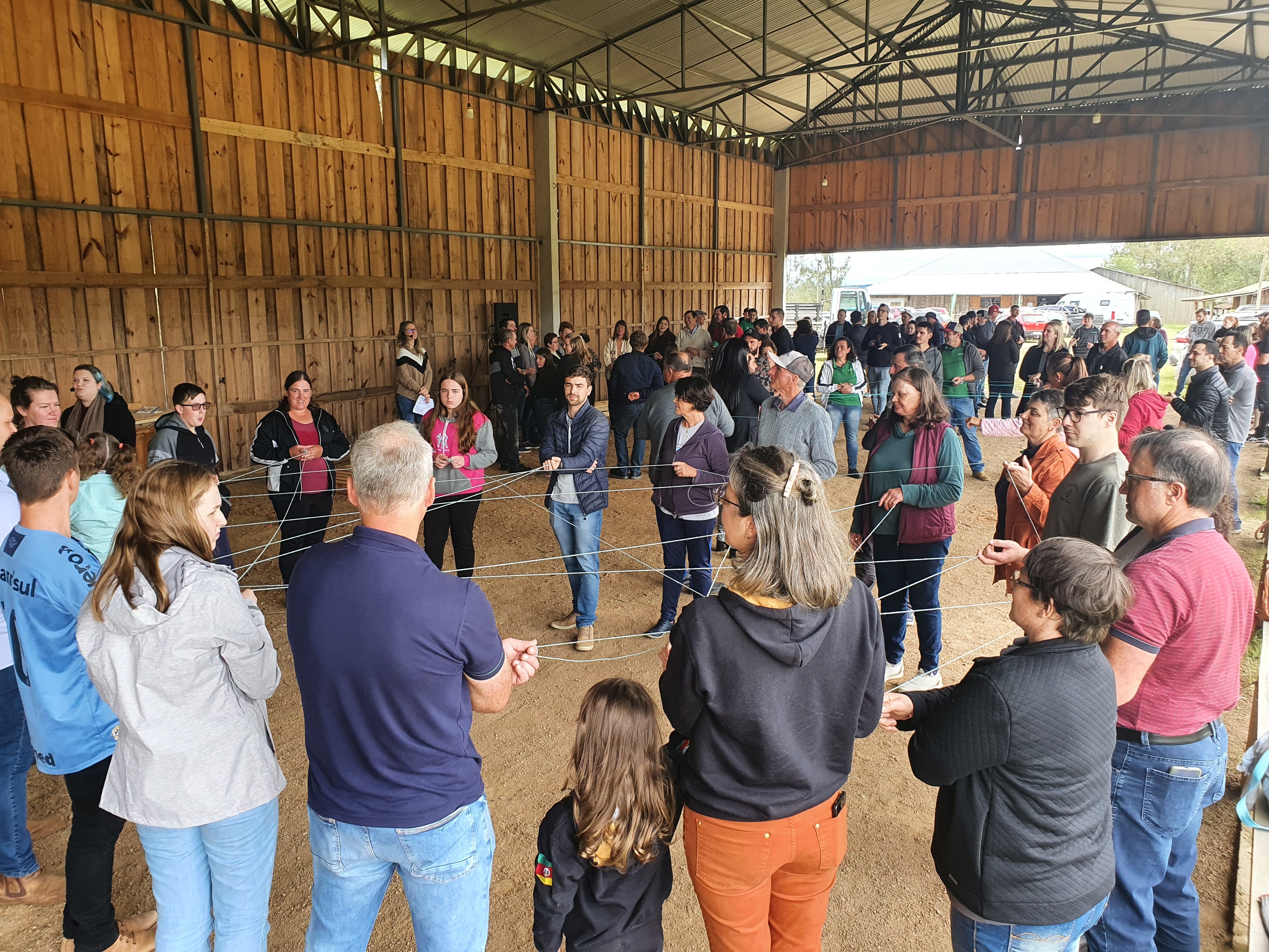Em um segundo momento, foram realizadas dinâmicas de integração entre as famílias e uma visita técnica à propriedade de Gerson Neumann, ex-participante do programa, na comunidade de Pinhal Alto, para conferir na prática o sistema de ordenha robotizada da propriedade.