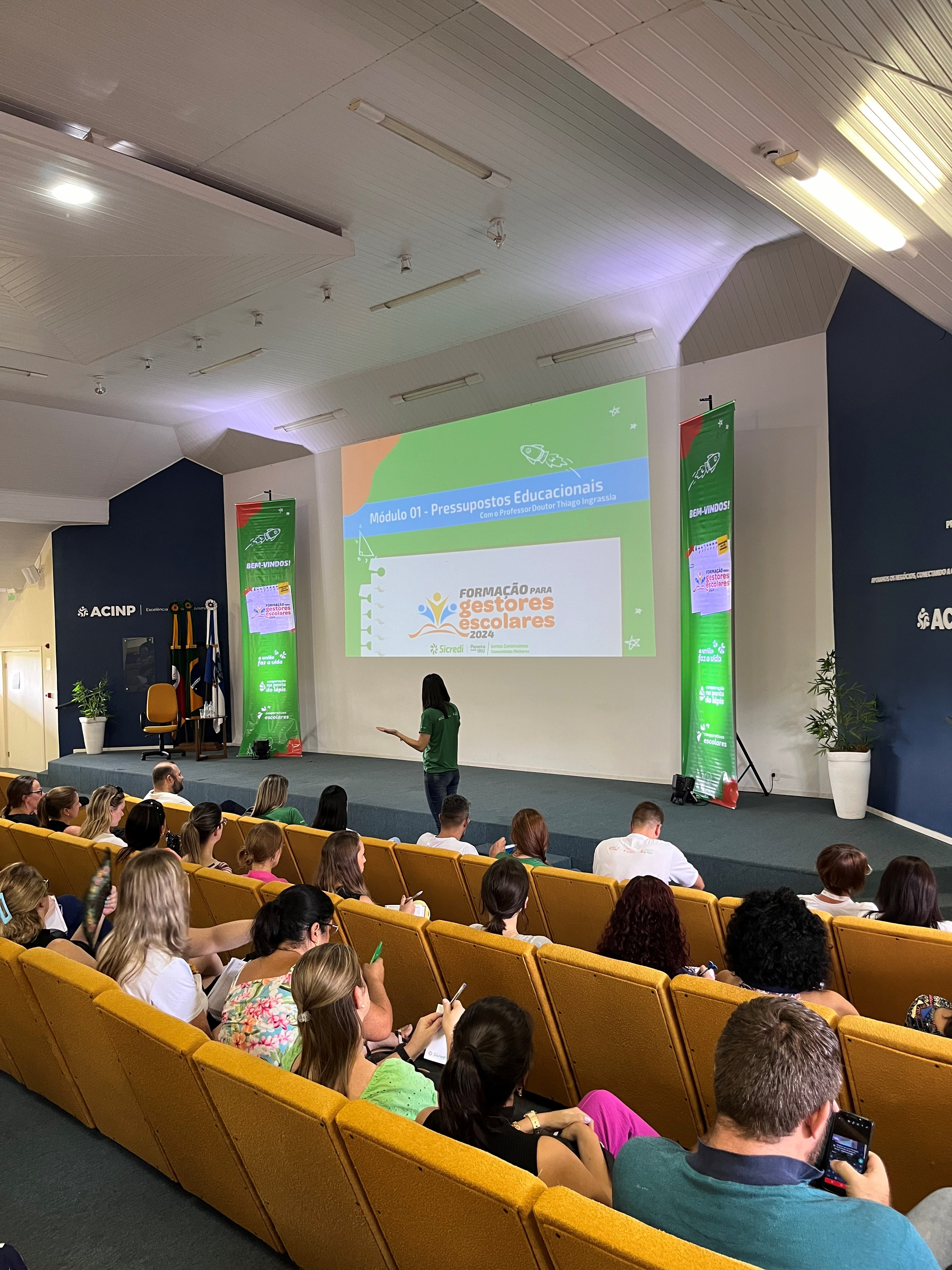 Coordenadores Pedagógicos, diretores e vice-diretores ouviram uma palestra com o sociólogo Thiago Ingrassia Pereira. O especialista falou sobre os Pressupostos Educacionais que norteiam os programas de educação da cooperativa, trazendo inspirações sobre as possibilidades da educação contemporânea. Ingrassia é professor de Sociologia, doutor e mestre em Educação e graduado em Ciências Sociais.