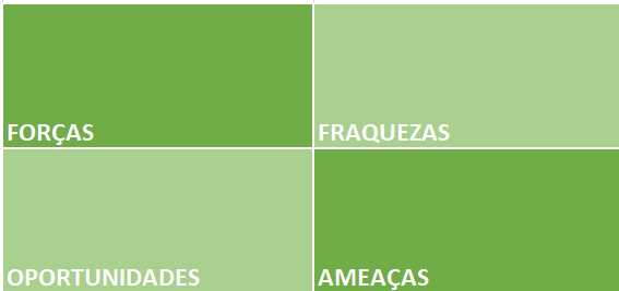 Avaliar quais são os fatores que estão comprometendo a lucratividade é fundamental para definir o rumo de qualquer negócio. Utilizar a tabela SWOT pode ser uma boa alternativa de ampliar a visão estratégica considerando: forças x fraquezas e oportunidades x ameaças. Convém lembrar que as Forças e Fraquezas são fatores internos como: ativos, habilidades ou recursos que uma companhia tem à sua disposição em relação aos seus competidores. Já as Oportunidades e Ameaças são fatores externos que a empresa não pode controlar, mas que emergem ou da dinâmica competitiva do mercado ou de fatores demográficos, econômicos, políticos, tecnológicos, sociais ou legais. Ao utilizar a tabela abaixo você já conseguirá ter uma visão mais clara e traçar estratégias para sua empresa. Liste ao menos 3 itens em cada quadrante:
